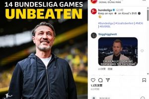 体育资讯10月5日讯 本轮德甲,多特1-1莱比锡,多特主帅科瓦奇率队已经跨赛季14场德甲不败。